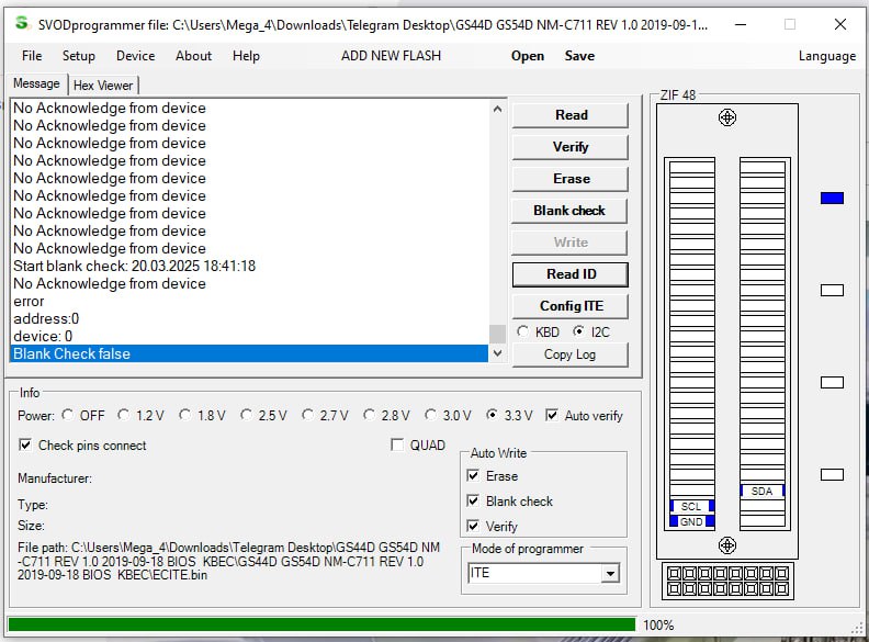 Merhaba yeni svod4 cihaz aldım lenovo gs44d/g554d nm-c711 anakart var it8227e I/o var programlayici yapamadım anakart klavye girişinden bağladım gnd bağladım anakart model svod4 download yaptim pin check yaptım anakart modelini sectim read id tıklıyorum ite is busy çıkıyor klavye grisi degilde svod4 L2C secersem birşeyler yapıyor resim olarak ekliyorum yardımcı olabilirmisiniz.